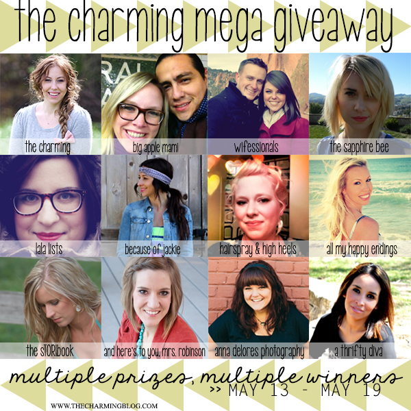 Giveaway rules: This giveaway will run from Monday, May 13 at midnight EST to Sunday, May 19 at midnight EST. This giveaway has no affiliation with Adobe, Target, PayPal, Starbucks, or the authors and publishers of Cupcakes and Cashmere and Blog, Inc. This giveaway was put together with love from these twelve bloggers to give followers the opportunity to win one of these five prizes. Winners will be announced via the Rafflecopter widget as well as via email once the winning entries have been confirmed. Thank you and good luck!